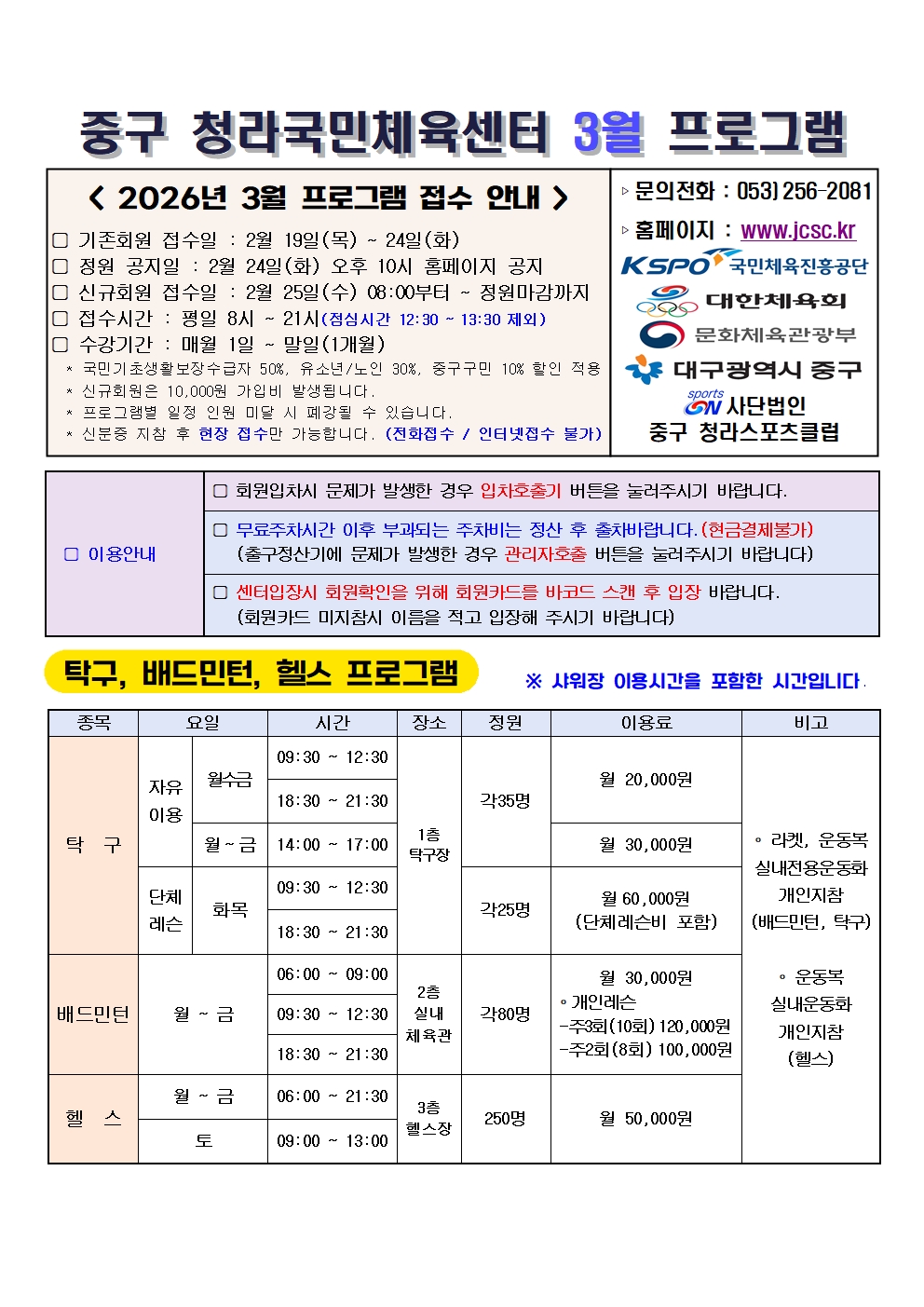 26.3월 청라국민체육센터 프로그램 안내